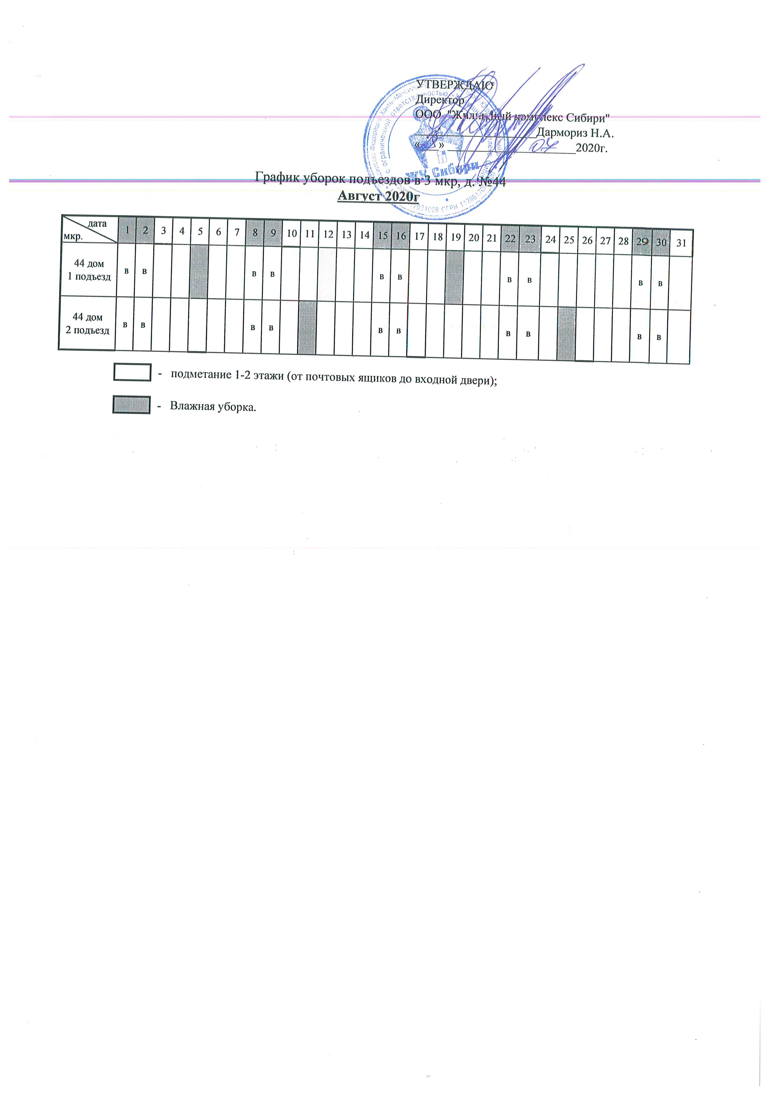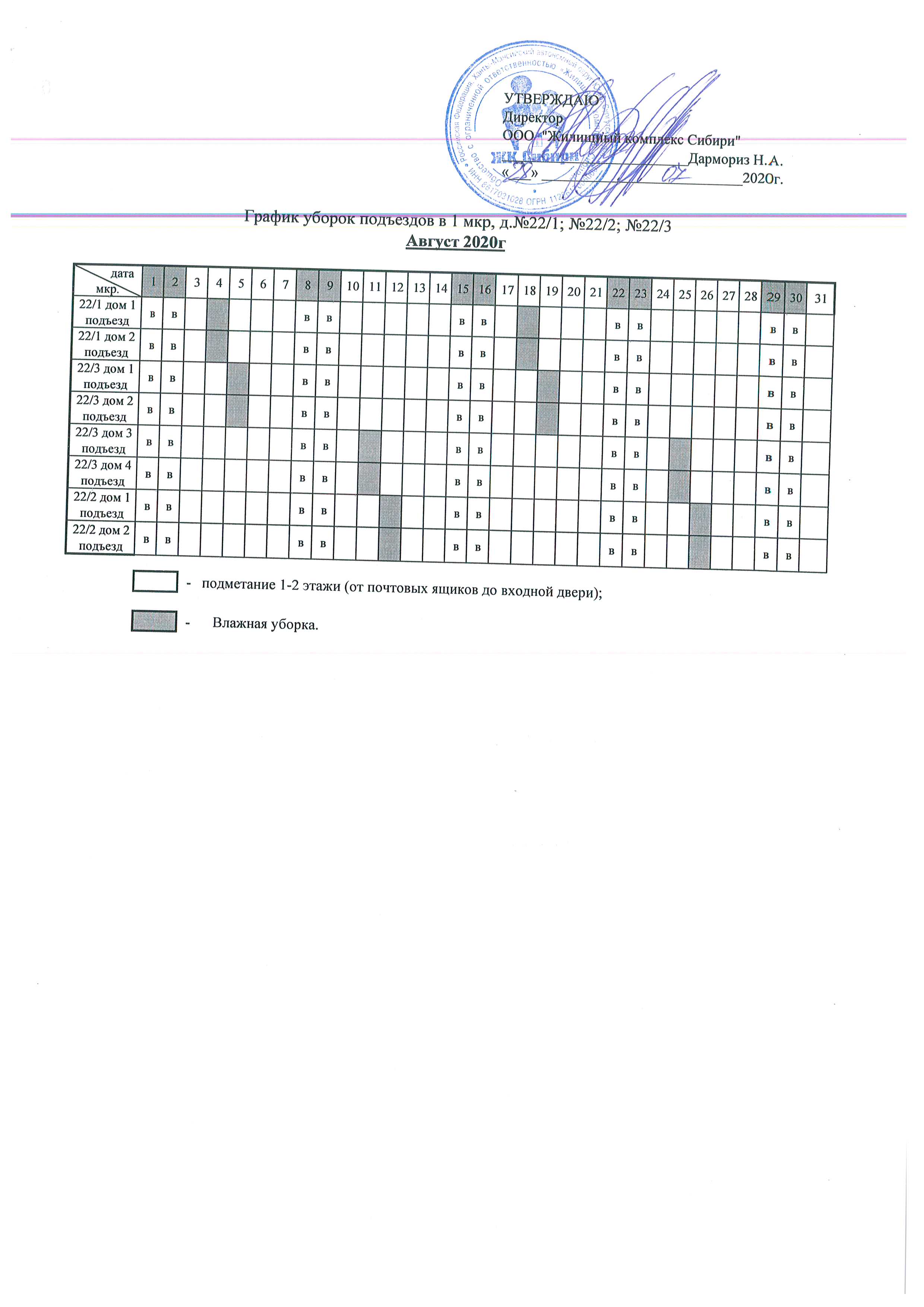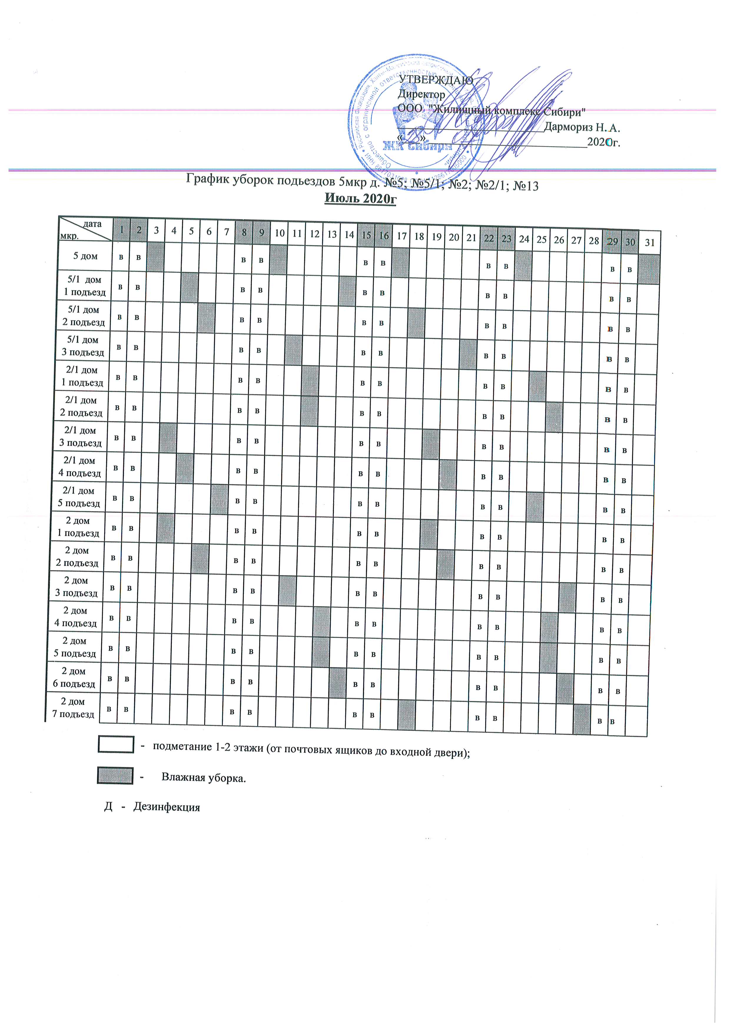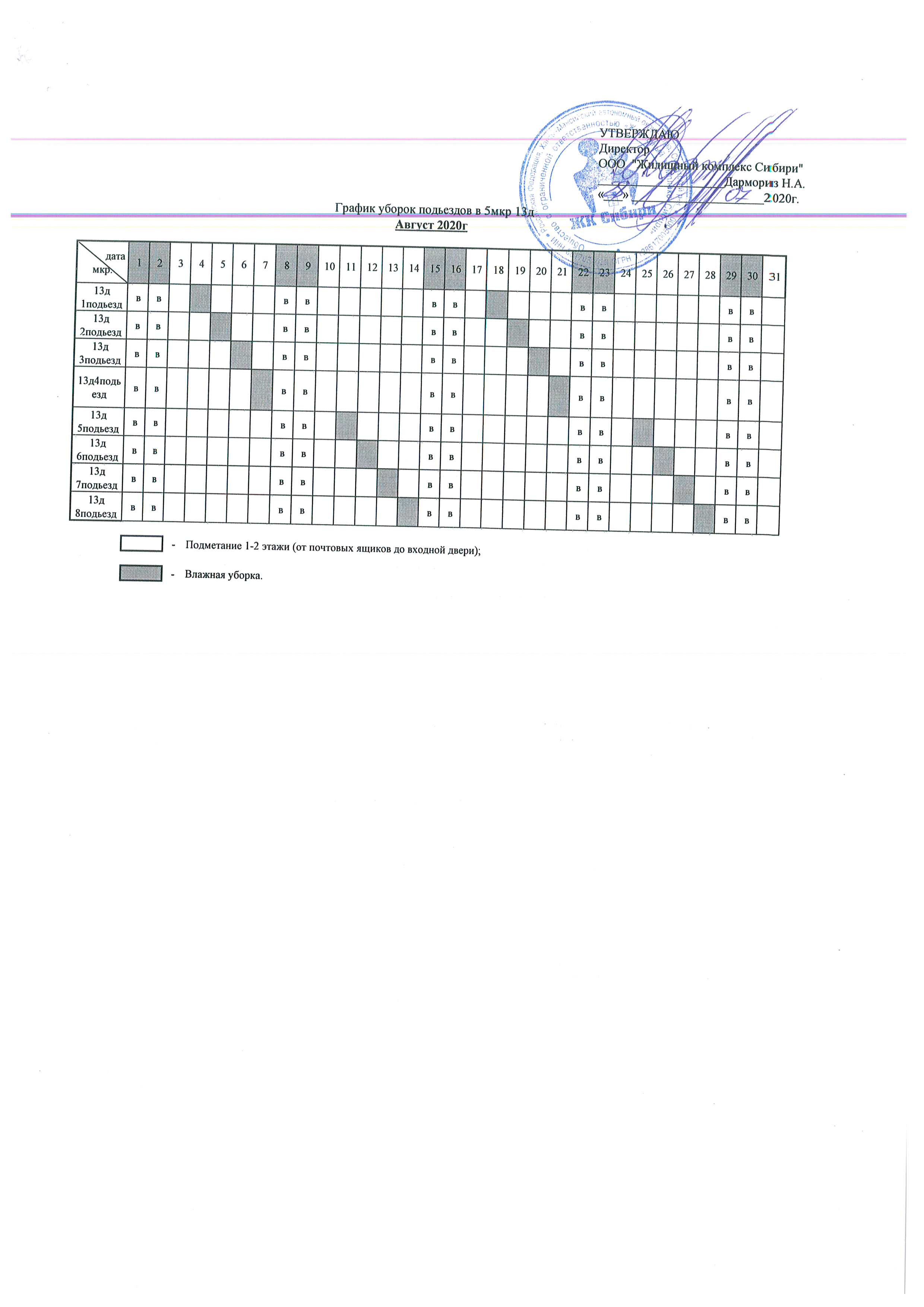 График уборки подъездов Август 2020г.